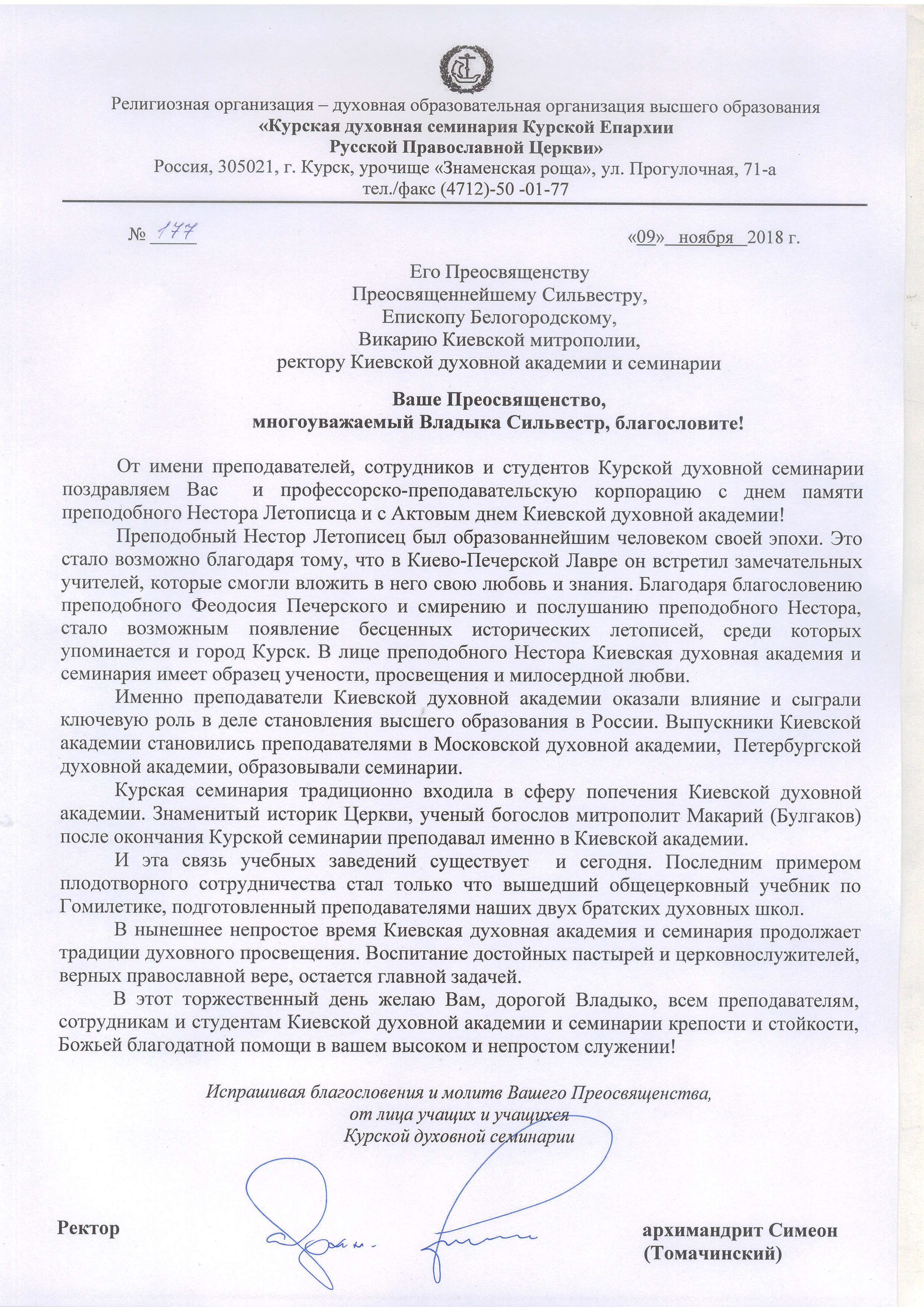 Поздравление Киевской духовной академии с Актовым днем